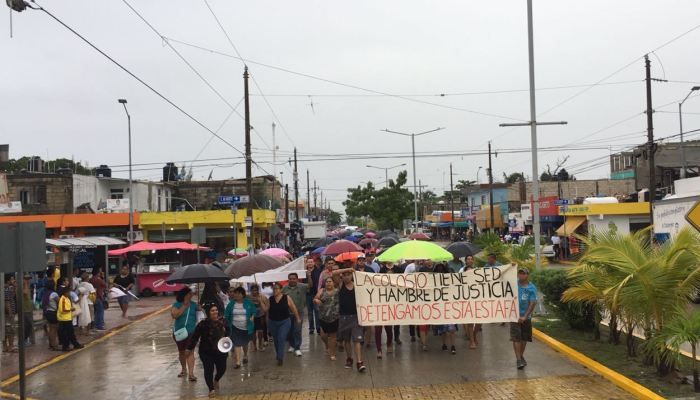 Los vecinos convocaron a la manifestación en punto de las seis de la tarde de este jueves, entre las que se observaron algunas líderes fundadoras de la invasión en 1994 (24 años atrás), reclamando que pese a todo ese tiempo no han podido regularizar porque la familia Castelazo, que se hace pasar como propietaria de la franja de 110 hectáreas conocida como Chen-Zubul (más de 5 mil lotes donde se asienta la Colosio), con el gobierno del estado y el ayuntamiento crearon a dicha Desarrolladora para la venta de los mismos en precios exorbitantes.