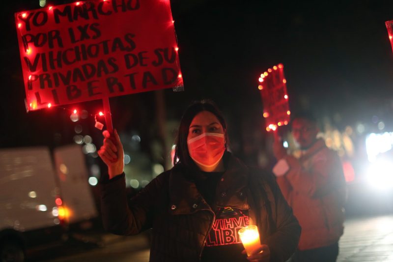 Además de pancartas, algunos portaron velas encendidas junto a las imágenes de personas fallecidas por sida.