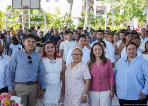 Acompañada del subsecretario de gobierno, Nabil Eljure Terrazas, quien asistió en representación de la gobernadora de Quintana Roo, Mara Lezama Espinosa, la alcaldesa capitalina agradeció a las parejas por darle la oportunidad de ser parte de este bello momento único y muy especial, al decidir formalizar su unión en las Bodas Colectivas que se hicieron en el marco del Día del Amor y la Amistad.