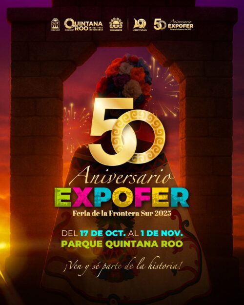 CHETUMAL, 17 de octubre. La Feria de la Frontera Sur Expofer Chetumal 2025, que este año celebra su 50 Aniversario, reunirá al talento local quintanarroense, con una nutrida participación de más de mil artistas que se presentarán del 17 de octubre al 01 de noviembre en el recinto ferial del Parque Quintana Roo.