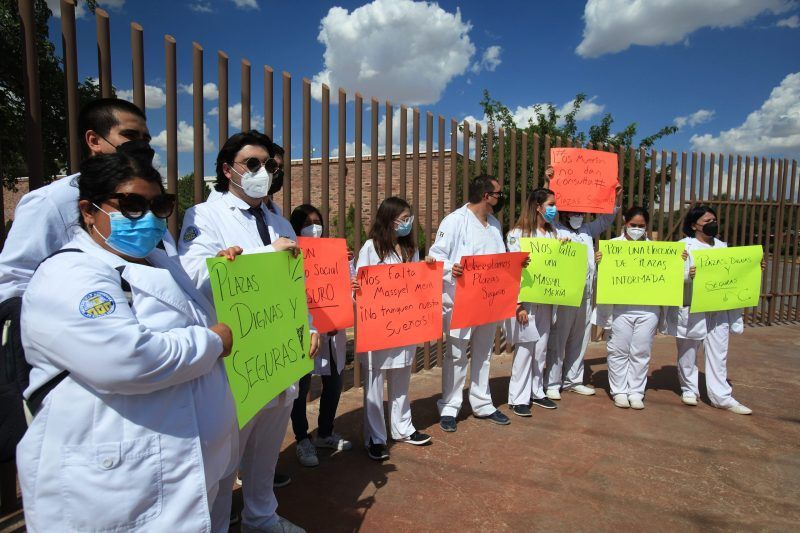 Médicos y estudiantes se manifestaron en Ciudad Juárez, fronteriza con Estados Unidos, por el presunto feminicidio de una de sus colegas ocurrido el lunes.