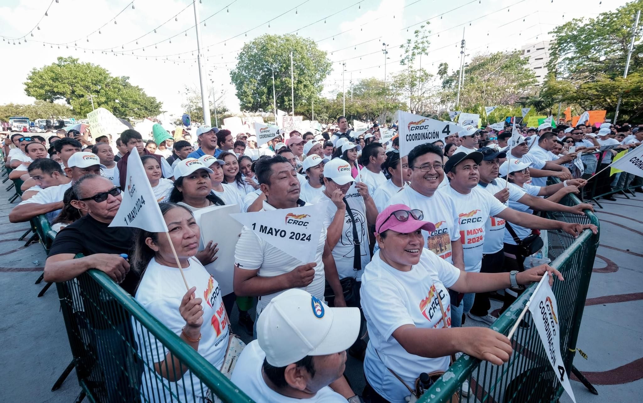 CANCÚN, Quintana Roo, 02 de mayo.- Con una concentración masiva trabajando del sindicato de la Croc conmemoraron este 1 de mayo el día del trabajo exigiendo mejoras a las condiciones laborales y reducción de la jornada laboral.