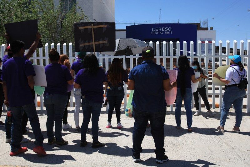 Con vestimenta morada y negra, los manifestantes partieron del norte de Ciudad Juárez, localidad del estado de Chihuahua y fronteriza con Estados Unidos, para ir al Centro de Readaptación Social.