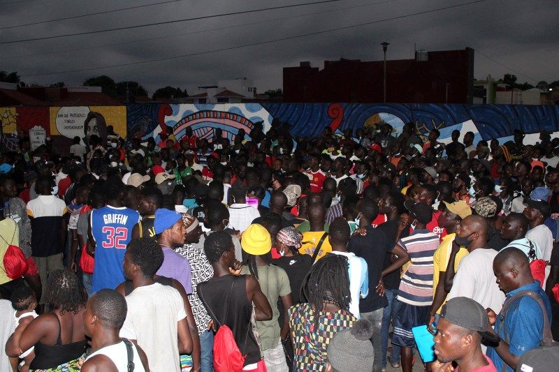 Durante la entrega de los papeles a los africanos, un grupo de migrantes haitianos discutieron entre ellos, llegaron a los golpes, para ponerse de acuerdo y pedir la misma atención a las autoridades mexicanas.