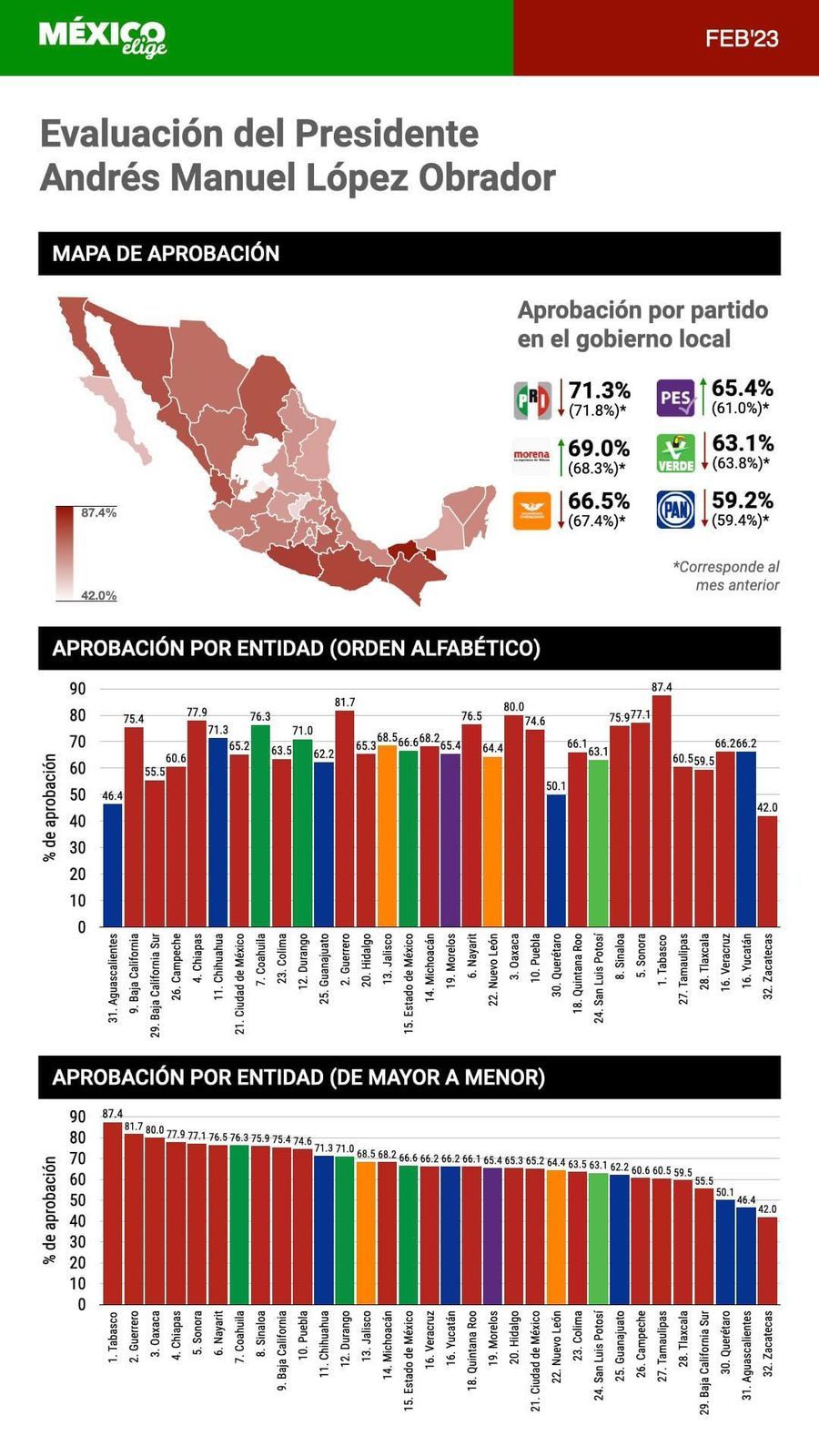 En el ejercicio, AMLO ocupa la posición 18 entre las 32 entidades con una aprobación del 66.1 por ciento de los encuestados.