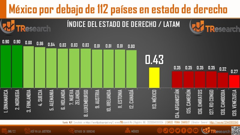 En México, el Estado de Derecho se debilitó, de acuerdo con un estudio elaborado por TResearch.