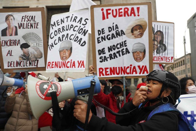 Castillo ha enfrentado diversas manifestaciones durante los 12 meses de su Gobierno, inicialmente encabezadas por grupos de derecha y ultraconservadores que no reconocen su triunfo electoral, y posteriormente por gremios de trabajadores, transportistas y agricultores que protestaron en las últimas semanas por el alza de precios de los combustibles y los fertilizantes.