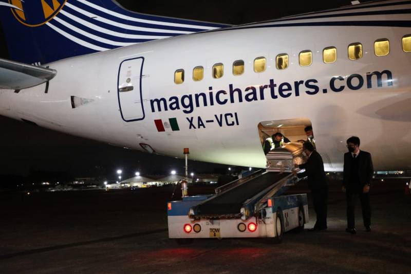 Los cuerpos de cuatro migrantes guatemaltecos fallecidos arribaron a la Fuerza Aérea Guatemalteca a las 23:34 h local del sábado, repatriados desde México, según constató Efe.