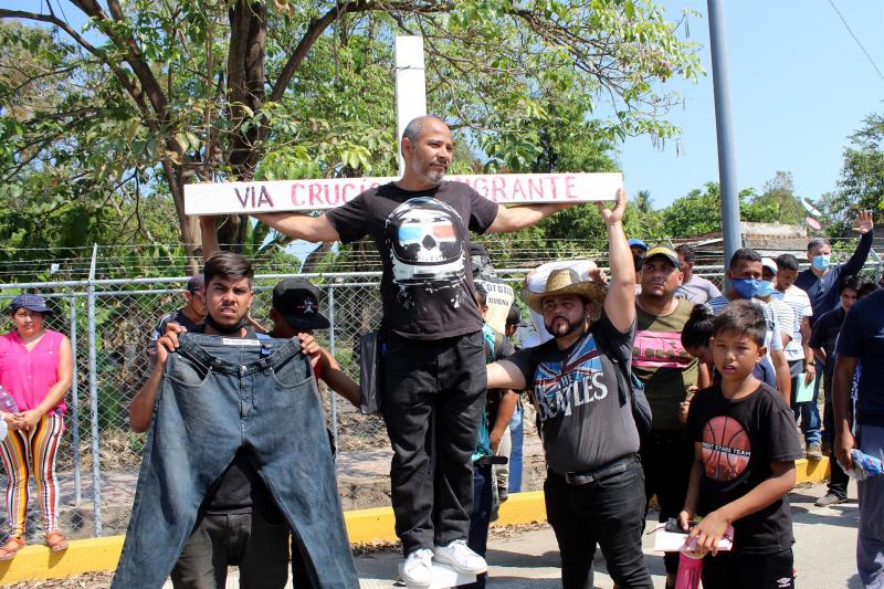 Migrantes realizan “viacrucis” en Tapachula previo a caravana