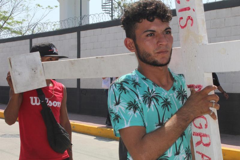 Este jueves, los extranjeros cargaron una cruz de madera y caminaron unos 12 kilómetros desde el Parque Bicentenario hasta las oficinas del Poder Judicial.