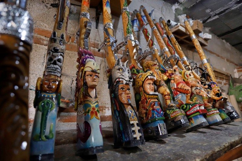 Con la imaginación desbordada y teniendo como herramienta sus manos, artesanos mexicanos elaboran los llamados mosquetones o rifles de madera que engalanan los carnavales mexicanos a la hora de detonar pólvora en cada una de sus danzas.