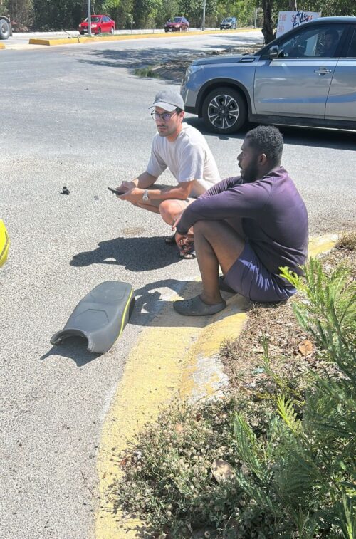 Playa del Carmen, Q. Roo, 7 de junio de 2025 — Un motociclista de origen cubano logró evitar heridas graves tras lanzarse al pavimento al ser impactado por un vehículo cuyo conductor, presuntamente distraído por el celular, no respetó un alto en la colonia Cruz de Servicios.