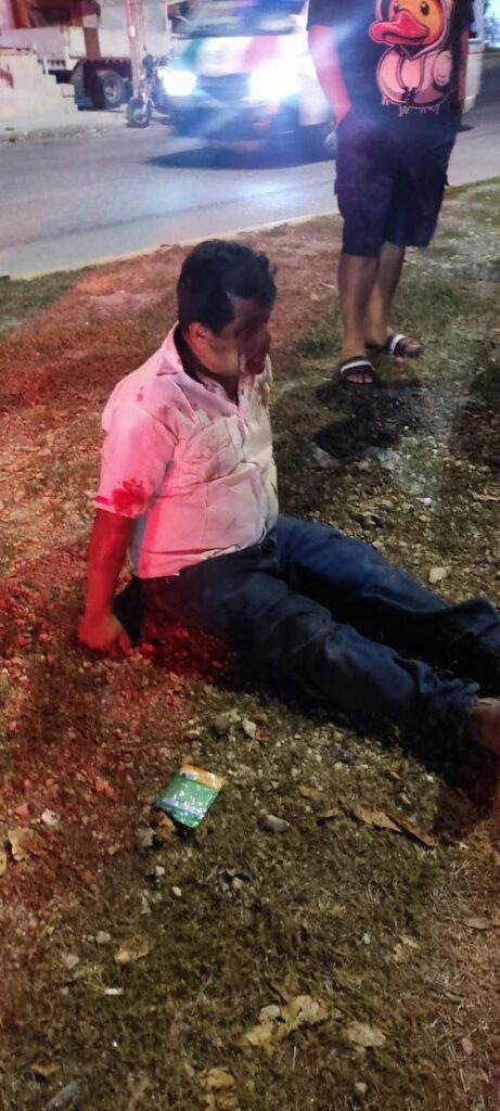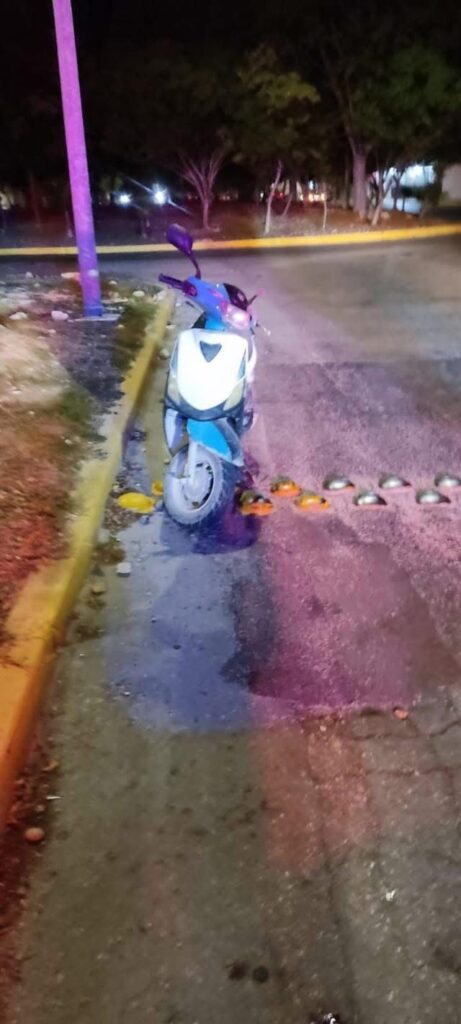 Playa del Carmen.-Un motociclista fue encontrado ensangrentado y golpeado en el camellón central de la avenida principal del fraccionamiento Misión de las Flores, tras perder el control de su unidad y derrapar en la madrugada de este martes.