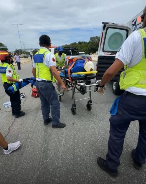 Playa del Carmen, Q. Roo.– Un motociclista resultó gravemente herido tras perder el control de su unidad e impactarse contra el costado de un camión que transportaba productos congelados, en hechos ocurridos la tarde de este lunes frente al complejo Corasol, sobre el bulevar Playa del Carmen.