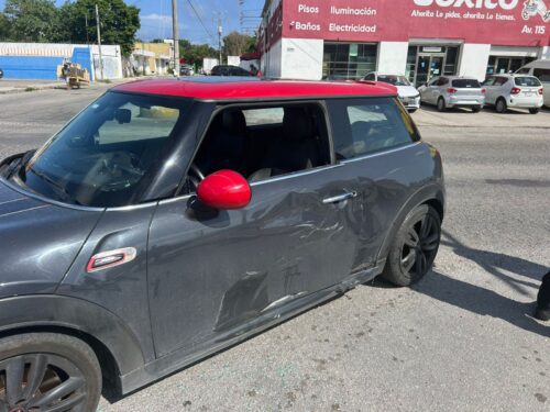 El accidente ocurrió alrededor de la 1:30 de la tarde en la intersección de la avenida 115 con calle 22, cuando el conductor de una motocicleta Italika 250 negra circulaba a gran velocidad y un automóvil Mini Cooper gris intentó retornar desde el camellón central.
