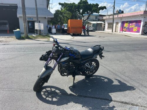 Playa del Carmen.– Un joven motociclista resultó con una herida en el brazo luego de impactarse contra un vehículo que le realizó un corte de circulación en la colonia Ejido, la tarde de este viernes.