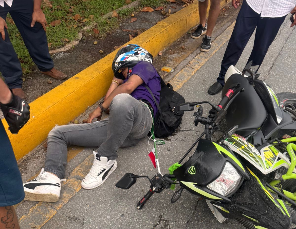 Derivado de esto perdió el control de la motocicleta se fue del lado y cayó en el pavimento, quedando con un golpe en la espalda y en las piernas, además de los raspones.