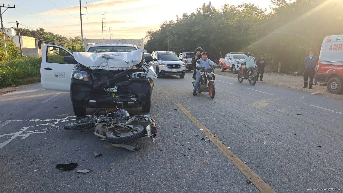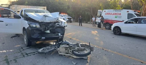 El lesionado fue identificado como Usiel Pérez, de 19 años de edad, quien se desempeña como vigilante del cenote Vesica. De acuerdo con la información recabada en el lugar, el joven ya había concluido su jornada laboral y se dirigía a descansar cuando, al salir a bordo de su motocicleta, fue impactado por una camioneta blanca de redilas.