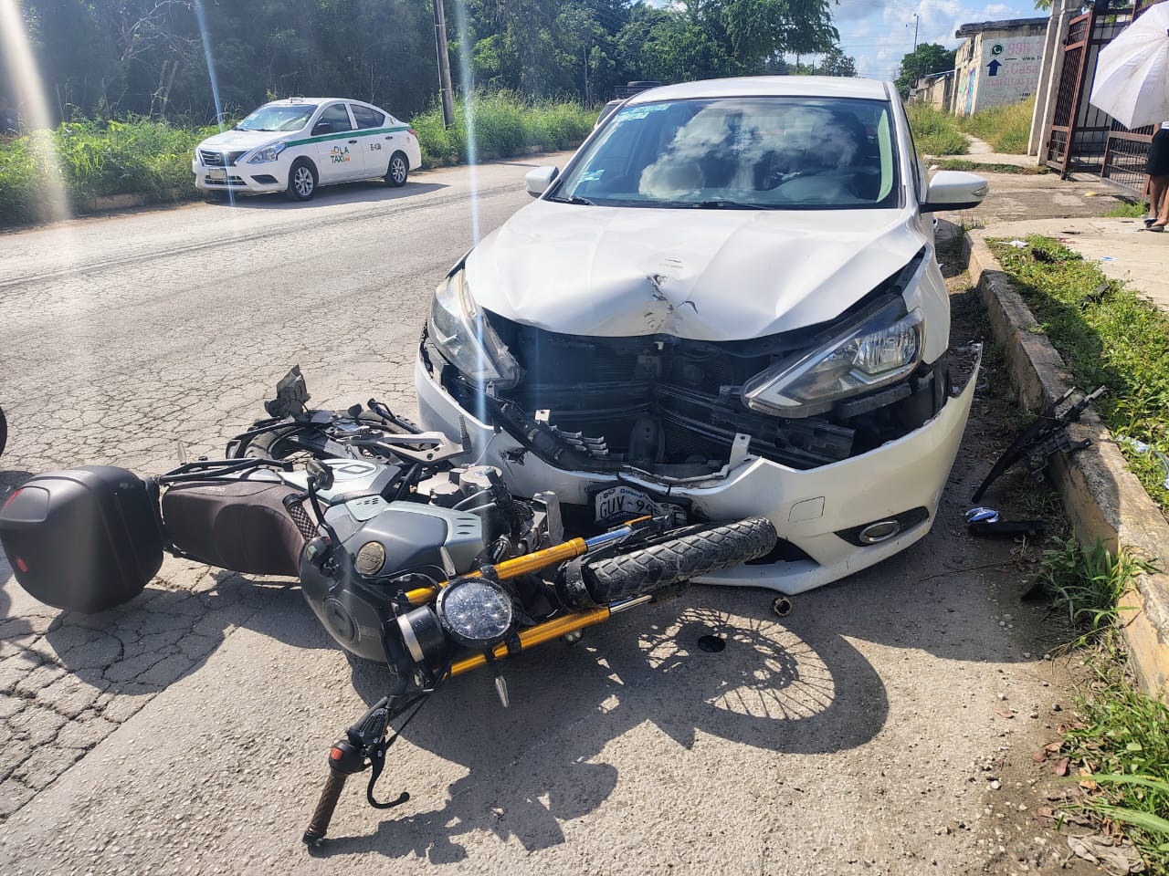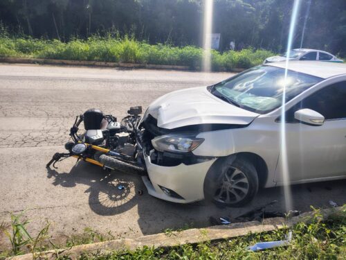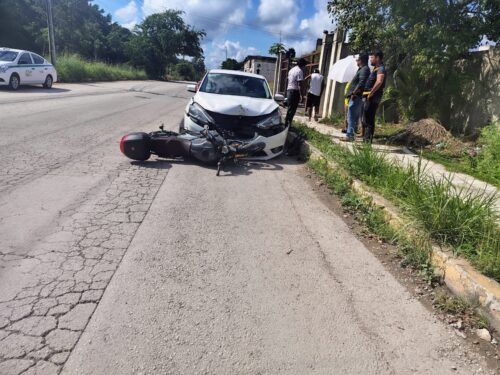 CANCÚN.- La tarde del miércoles se registró un accidente vial en la Av. Galaxias del Sol, en la SM 251, donde un motociclista resultó lesionado tras impactarse contra un vehículo particular estacionado en sentido contrario sobre la franja amarilla.