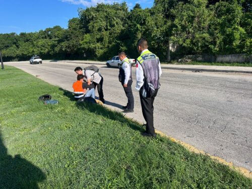 PLAYA DEL CARMEN, Quintana Roo, 18 de noviembre de 2025.— Un motociclista terminó con lesiones en una pierna luego de perder el control de su vehículo y chocar contra el camellón central de la avenida, en las inmediaciones del fraccionamiento Villamar 2.