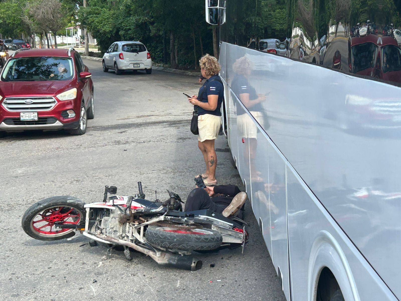 PLAYA DEL CARMEN, Quintana Roo, 18 de noviembre de 2025.— Un motociclista resultó lesionado luego de que el conductor de un autobús de la empresa Del Valle no respetara el alto correspondiente y se atravesara en su trayectoria, provocando un choque en las inmediaciones del fraccionamiento Villas Riviera.