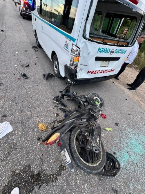 Motociclista sufre graves lesiones al chocar contra combi en la carretera federal 307