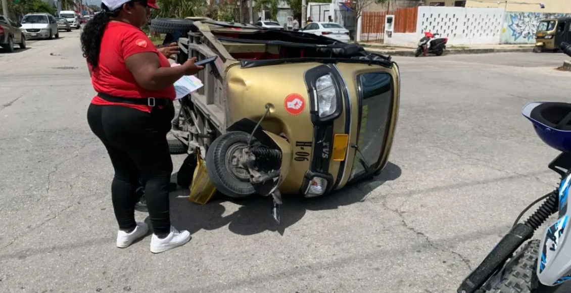 Mototaxi vuelca tras pasar tope a exceso de velocidad y embiste a motociclista en Cancún