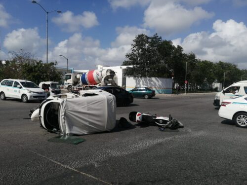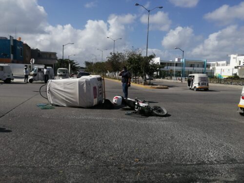 PLAYA DEL CARMEN, Quintana Roo, 06 de febrero. – Por circular a exceso de velocidad conductor de una moto taxi provocó accidente en el fraccionamiento villas del Sol, afortunadamente no hubo personas lesionadas solamente daños materiales.