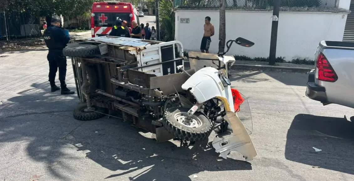 PLAYA DEL CARMEN, Quintana Roo, 16 de febrero de 2026.– Un conductor de mototriciclo resultó lesionado luego de provocar un accidente al no respetar su alto en calles de la colonia Ejido, donde terminó impactándose contra una camioneta con preferencia de paso y volcó tras el fuerte choque. El percance ocurrió alrededor de las 12:30 … Sigue leyendo Mototriciclo se vuelca en la colonia Ejido tras no respetar alto; conductor termina lesionado