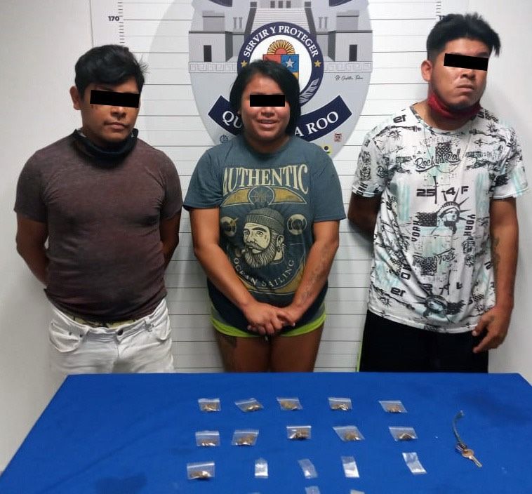 Ante el hallazgo, las tres personas fueron detenidas como probables responsables del delito contra la salud, para trasladarlos a las instalaciones de la Policía Quintana Roo para ponerlos a disposición de la autoridad correspondiente.