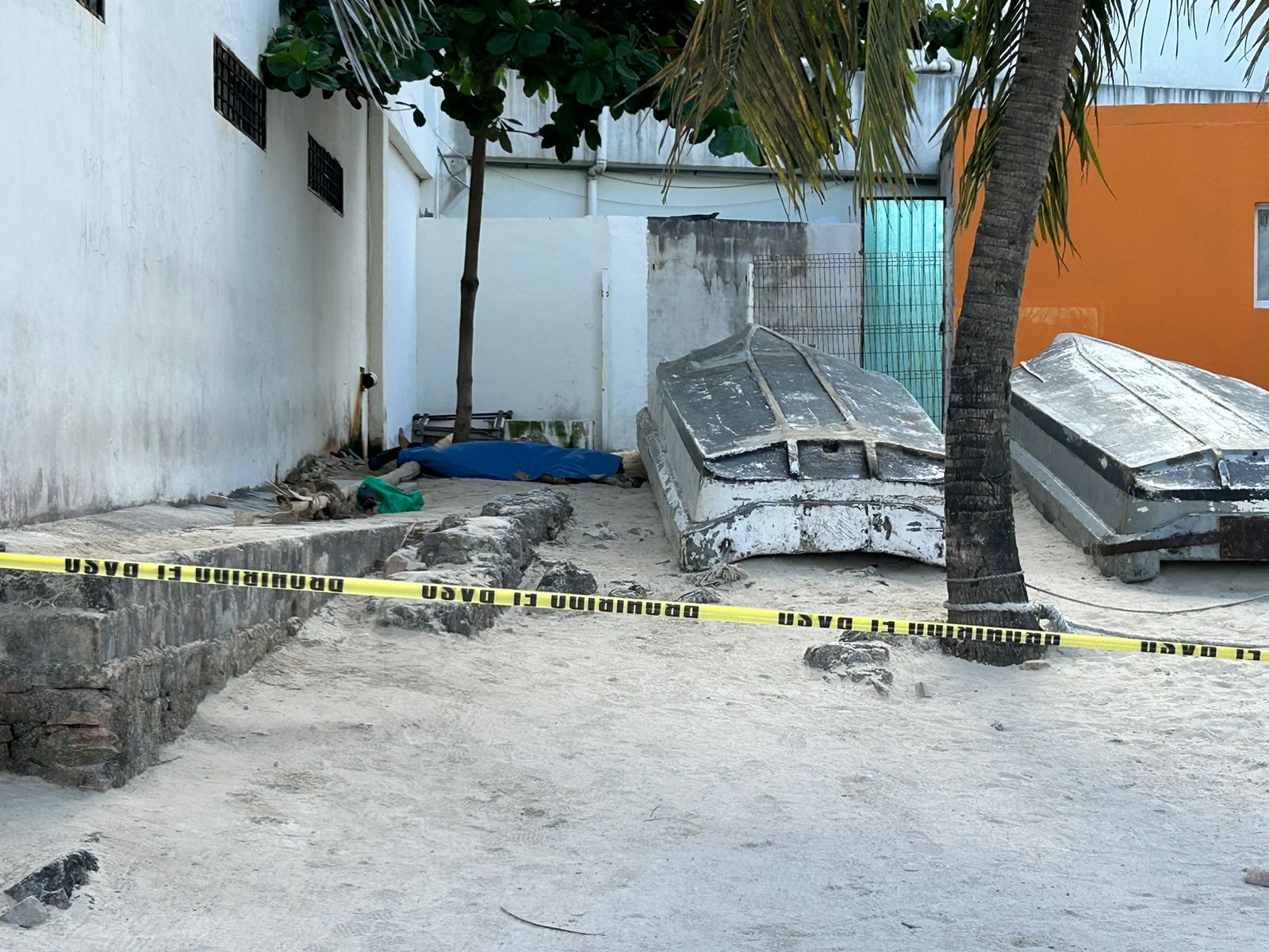 Alrededor de la 1:00 de la tarde elementos de la Policía Turística que caminaban haciendo un recorrido pedestre en la playa de la Zona Federal marítima con calle 1ra Sur, encontraron el cuerpo de un sujeto acostado detrás de unas lanchas.