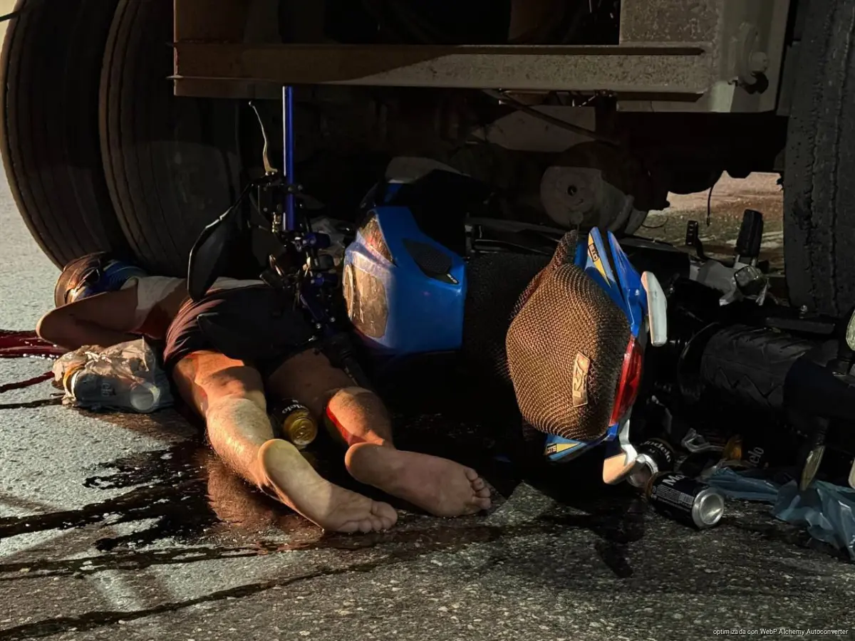 CANCÚN, Quintana Roo, 28 de abril de 2026.- Un motociclista perdió la vida la noche de este lunes en un trágico accidente registrado sobre la avenida José López Portillo, a la altura de la colonia Tres Reyes, luego de impactarse contra un tráiler de doble remolque que presuntamente realizaba una maniobra indebida.