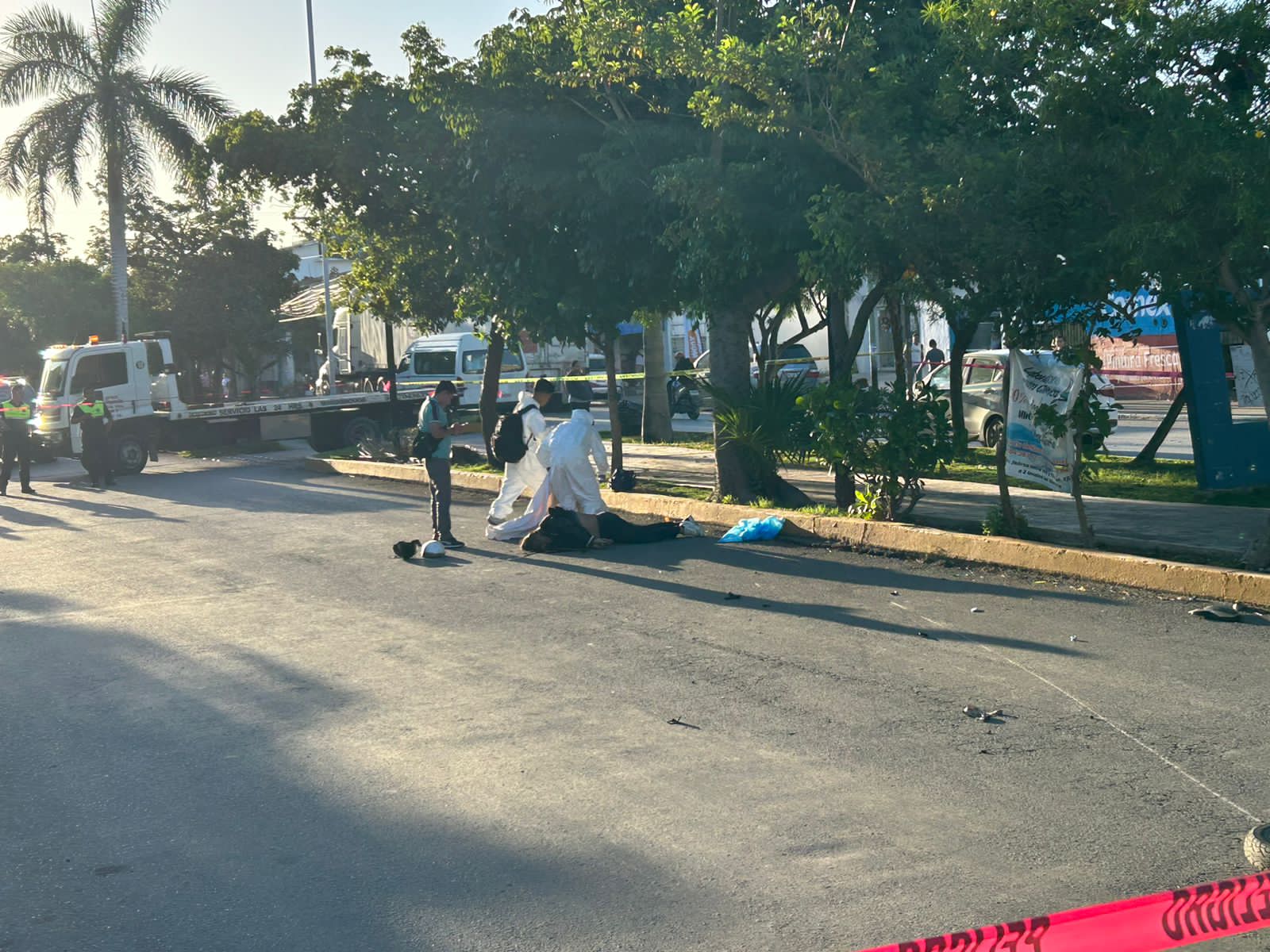 Alrededor de las 6:30 de la mañana se reportó que un hombre que viajaba a bordo de una motocicleta Italika 125, color negro, con placas 79UJT3, en dirección hacia el poniente, sobre la avenida Juárez al llegar a la avenida 100, se impactó de frente contra una ceiba que hay en el camellón central.