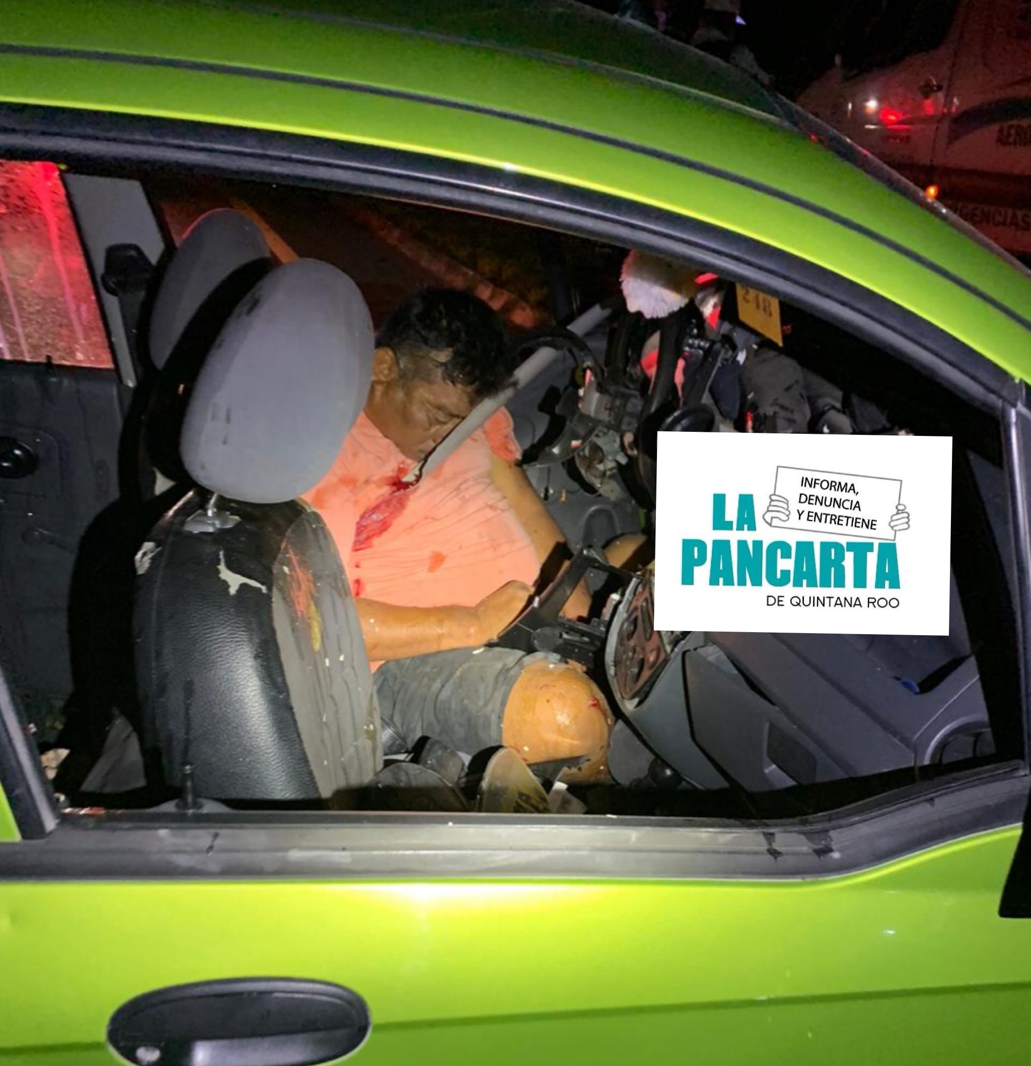 El vehículo color verde con placas de circulación del estado de Quintana Roo quedó con el frente prácticamente destruido, el conductor quedó prensado.
