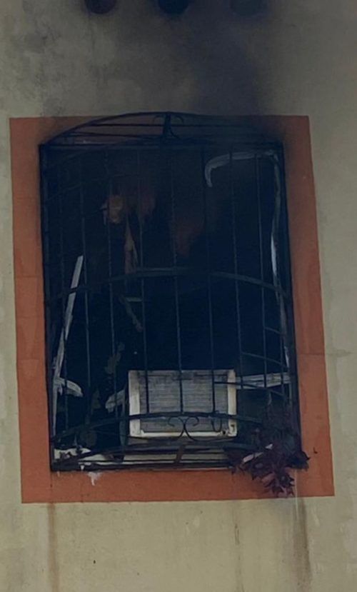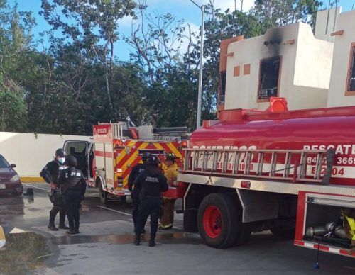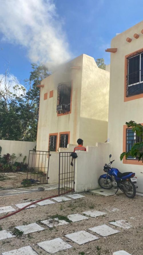 PLAYA DEL CARMEN, Quintana Roo, 25 de enero.- Voraz incendio arrasó con el interior de una vivienda y con la vida de una perrita que se refugió el fuego bajo de una cama; los bomberos arribaron al lugar para sofocar las llamas que generaban una enorme cortina de humo que salía por la ventana.