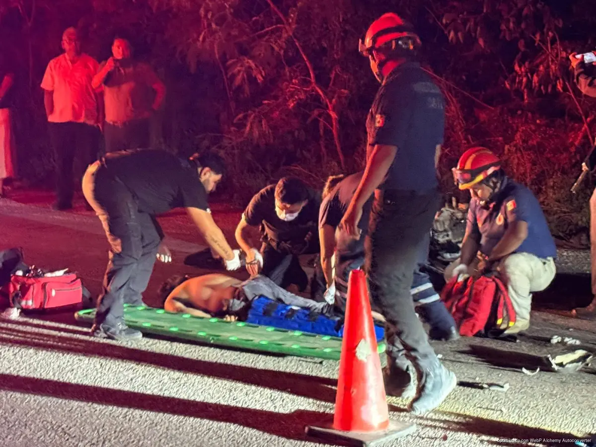 El primer hecho se registró sobre la carretera Tulum–Cobá, a la altura del kilómetro 4.5, donde un motociclista chocó de frente contra un autobús de pasajeros de la empresa Alianza. De acuerdo con los reportes preliminares, el conductor de una motocicleta Italika 125Z sin placas habría invadido el carril contrario, provocando el impacto.