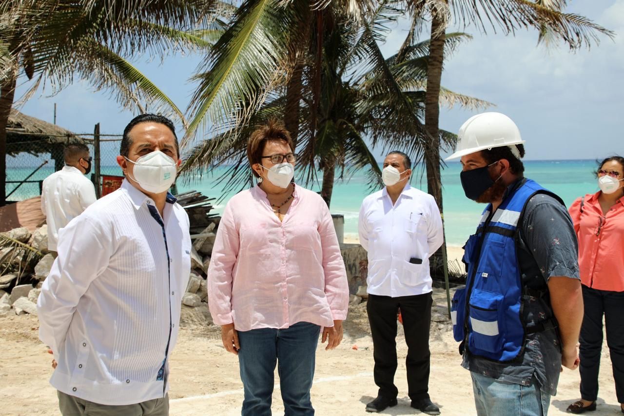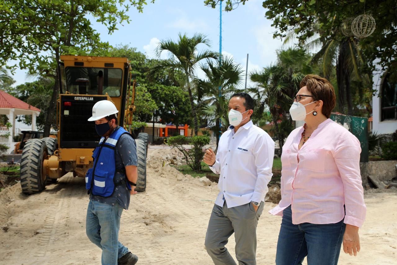 El gobernador de Quintana Roo, Carlos Joaquín González, y la presidente municipal de Solidaridad, Laura Beristain Navarrete supervisaron la zona donde están afinando los preparativos para la Rehabilitación de la Quinta Avenida, la Plaza Fundadores y calles aledañas.