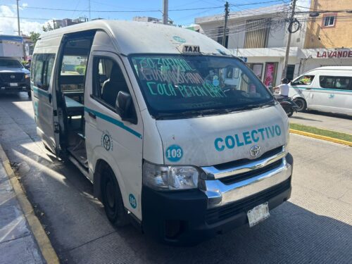 PLAYA DEL CARMEN, Quintana Roo, 8 de diciembre de 2025.– Una mujer que viajaba en una combi del transporte público resultó lesionada en los brazos y en la cabeza luego de que la unidad chocara contra una camioneta estacionada en la colonia Centro.