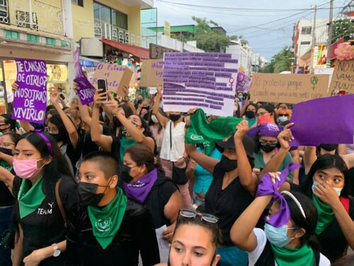 “Somos el grito de las que ya no tienen voz”, “Quintana Roo feminicida”, “Hombres, no queremos su festejo, queremos su respeto”, “aborto seguro y legal”, eran algunos de los mensajes que portaban en cartulinas o mantas.