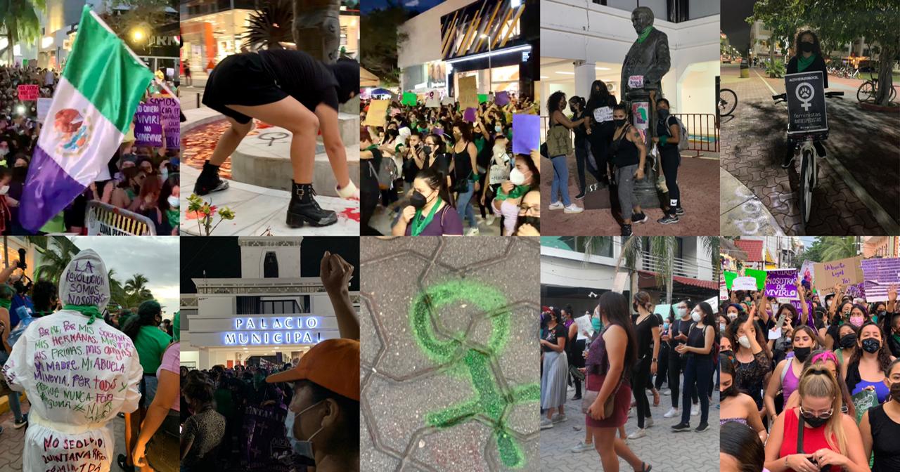“Somos el grito de las que ya no tienen voz”, “Quintana Roo feminicida”, “Hombres, no queremos su festejo, queremos su respeto”, “aborto seguro y legal”, eran algunos de los mensajes que portaban en cartulinas o mantas.