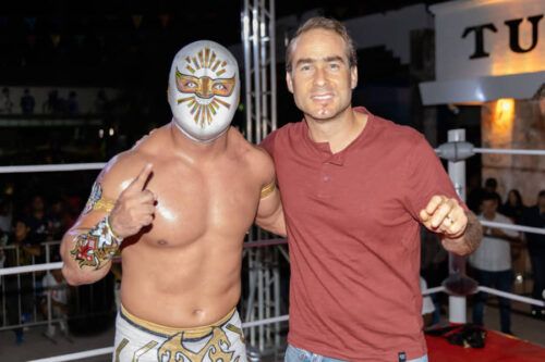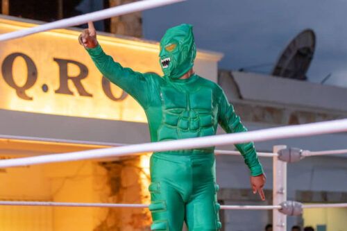 TULUM, Quintana Roo 29 mayo. – Un espectáculo de primera vivieron familias y turistas de Tulum durante la noche de este domingo, al llevarse a cabo el tan anhelado encuentro de Lucha Libre entre el Místico y Último Guerrero, un evento que superó expectativas al aglomerar más de dos mil personas a un costado del cuadrilátero ubicado cerca del palacio municipal.