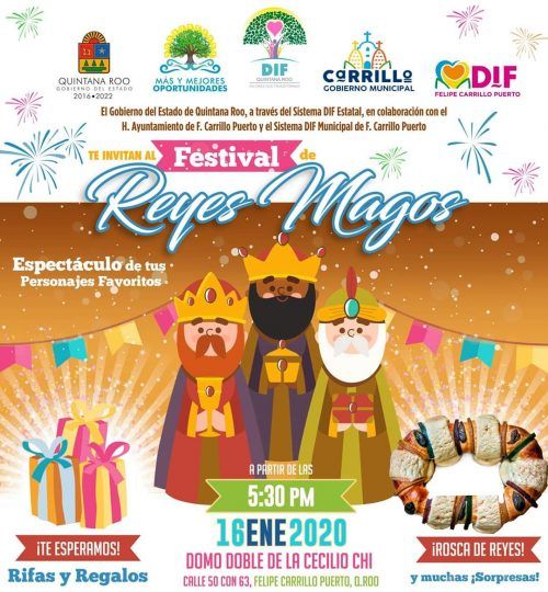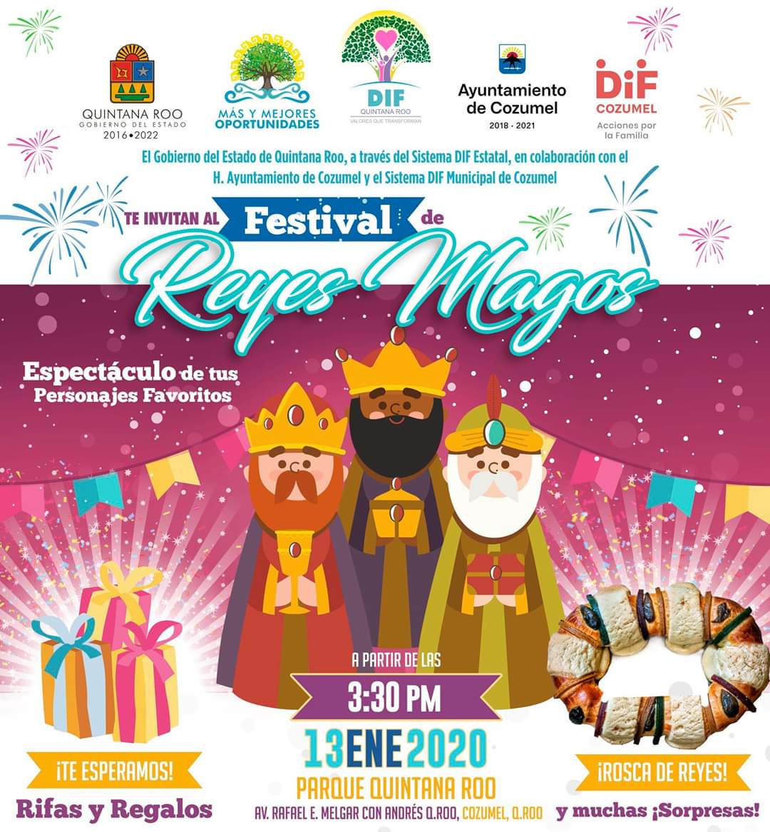 CHETUMAL, Quintana Roo, 8 de enero.-Con la presentación de botargas, juegos, concursos, rifa de regalos y la tradicional rosca de reyes, esta tarde la niñez que habita en Chetumal podrá disfrutar del festival del Reyes Magos.