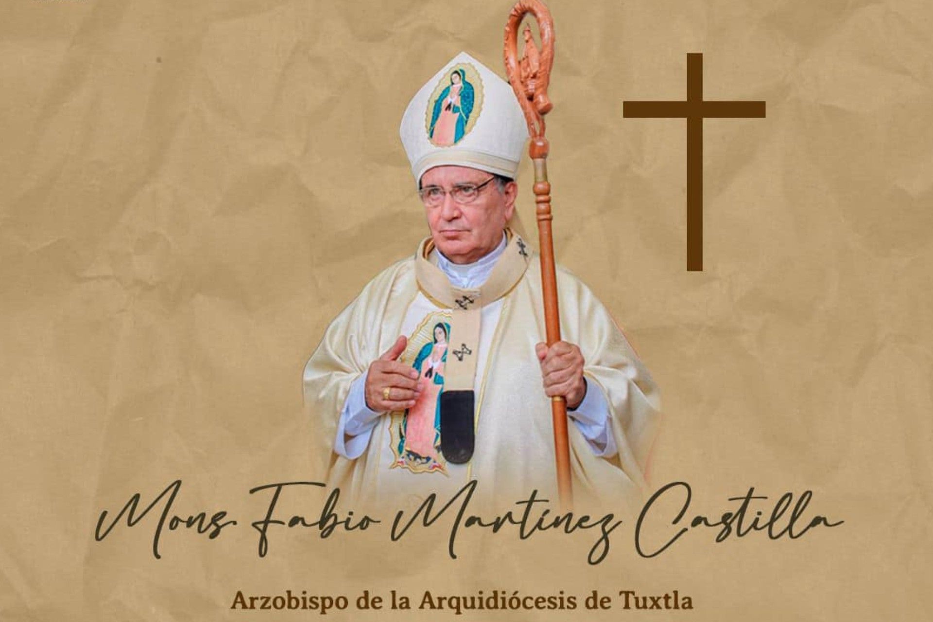 Comunicamos con gran pesar en el corazón al Pueblo de Dios que peregrina en esta Arquidiócesis de Tuxtla, que nuestro Arzobispo, Mons. Fabio Martínez Castilla, ha sido llamado hoy a la Casa del Padre”, se lee en su mensaje
