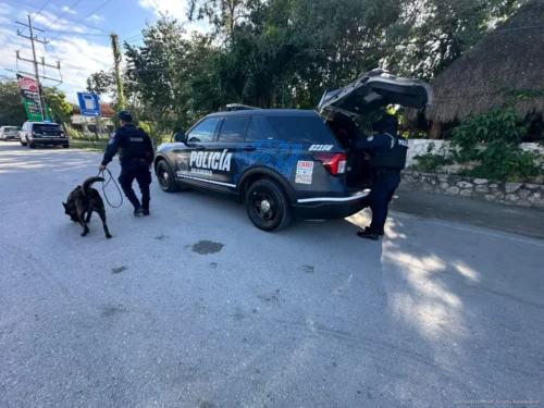 Playa del Carmen, 20 de enero de 2026.-Lo que parecía un viaje tranquilo rumbo a Playa del Carmen terminó antes de la esperado para un pasajero luego de que el olfato infalible de un canino k9 lo delatara el filtro policiaco número 2 de la ciudad.