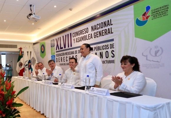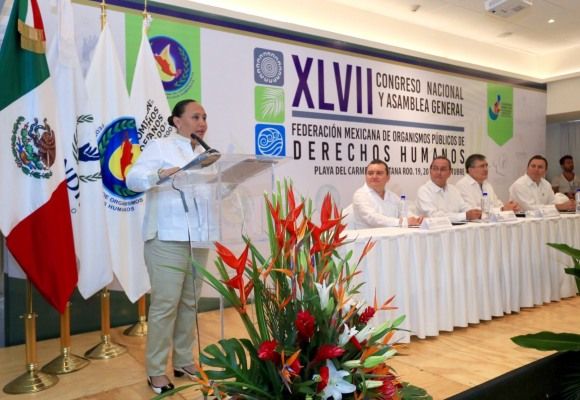 Lo anterior, durante el XLVII Congreso Nacional y Asamblea General de la Federación Mexicana de Organismos Públicos de Derechos Humanos, que encabezó el Presidente de la Comisión Nacional de los Derechos Humanos, Luis Raúl González Pérez, y en representación del Gobernador del Estado, el Secretario de Gobierno, Francisco López Mena. Caber señalar que este encuentro reúne a los titulares y representantes de estas instituciones del país, quienes en Asamblea renovarán la Presidencia la Federación Mexicana en el Estado de Quintana Roo.