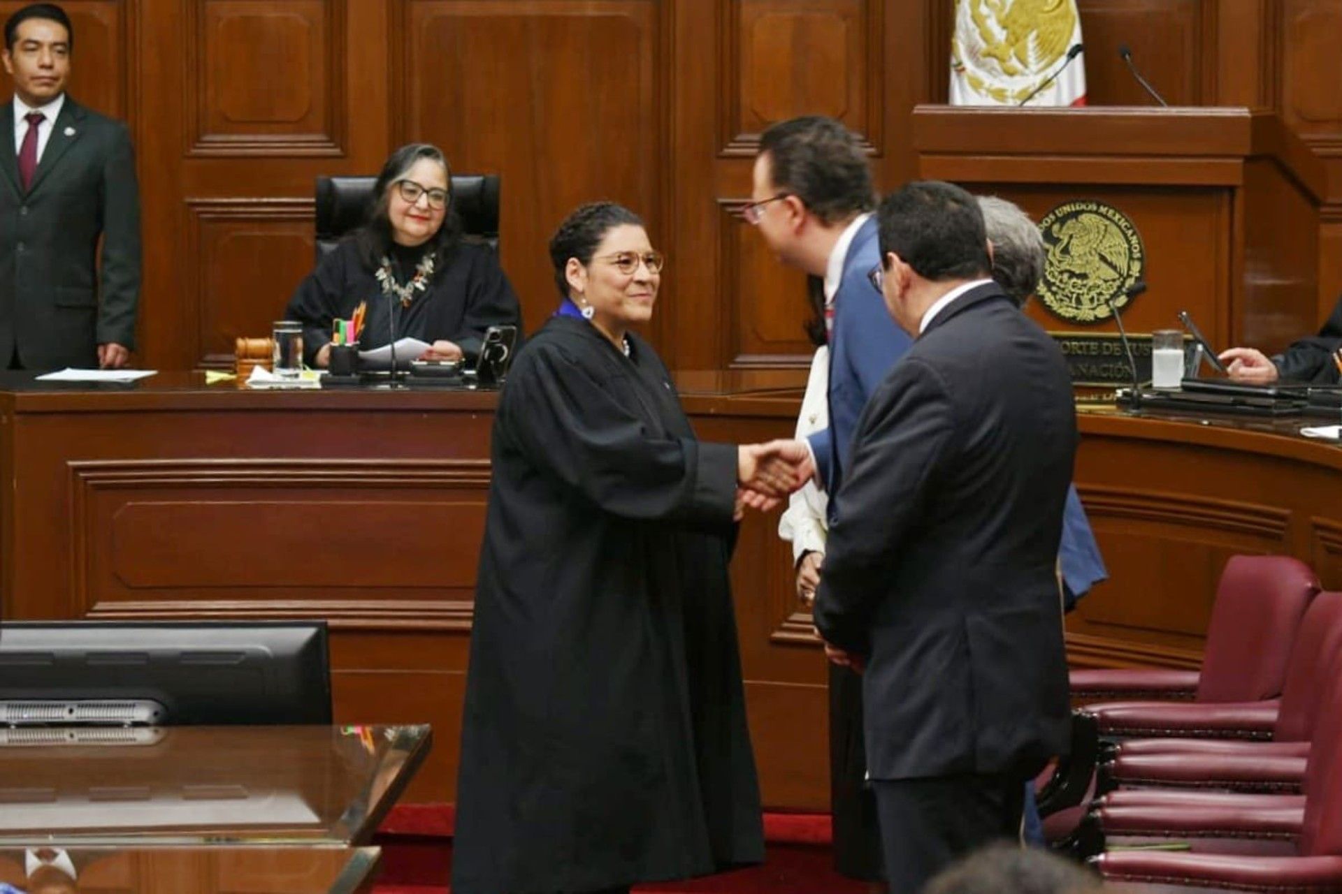 La presidenta de la Suprema Corte, Norma Lucía Piña, hizo entrega de la toga magisterial, así como de la credencial y del distintivo correspondiente a la nueva ministra Lenia Batres Guadarrama, con lo que, por primera vez, el Tribunal Pleno contará con la participación de cinco ministras.