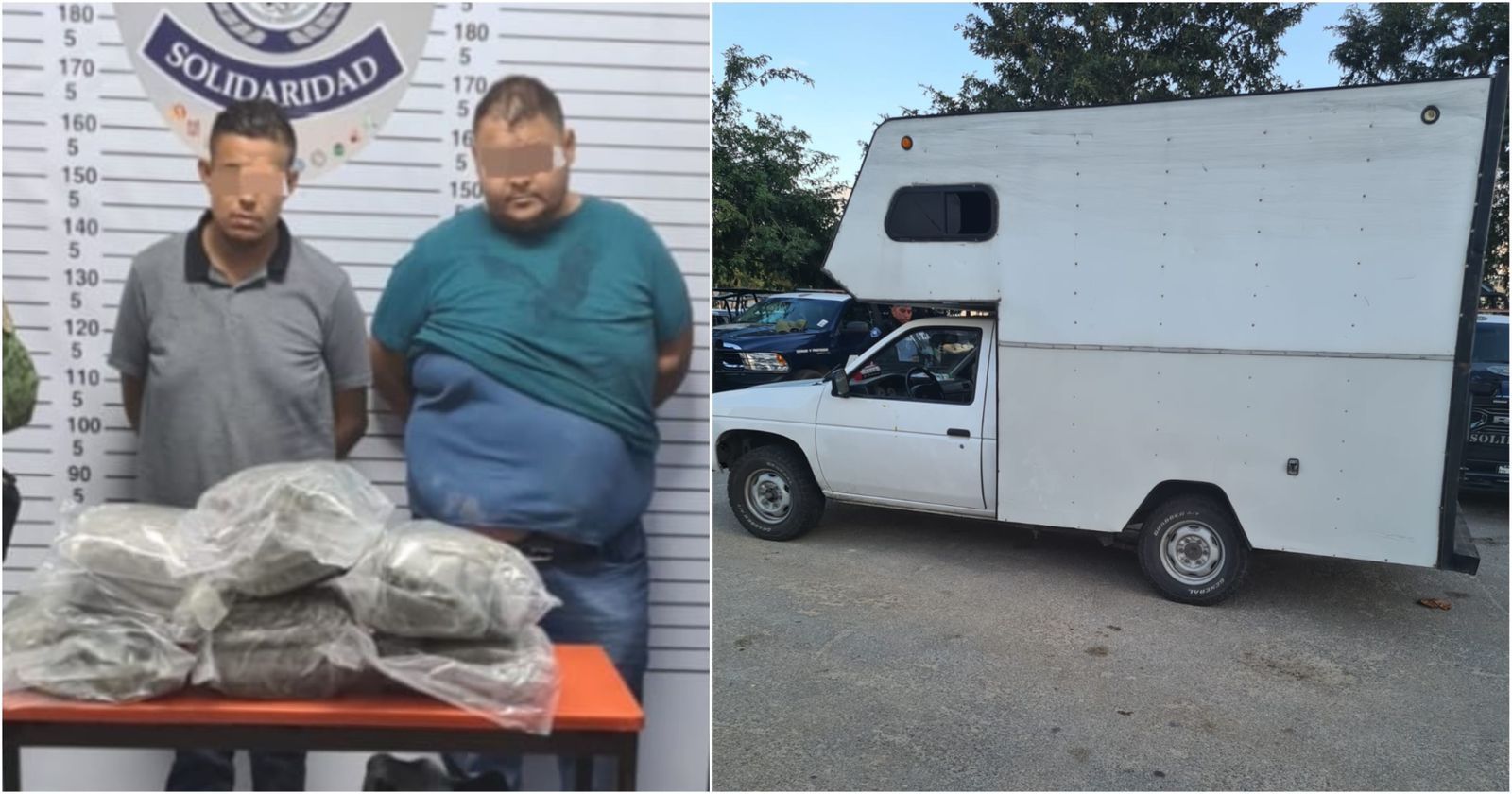 PLAYA DEL CARMEN, Quintana Roo, 24 de febrero. – Policías de la Secretaría de Seguridad Pública y Tránsito Municipal de Solidaridad y elementos de la Secretaría de la Defensa Nacional, aseguraron a dos sujetos en posesión de 6 paquetes con posible marihuana en el puesto de inspección preventiva ubicado en la carretera federal Playa del Carmen – El Tintal.