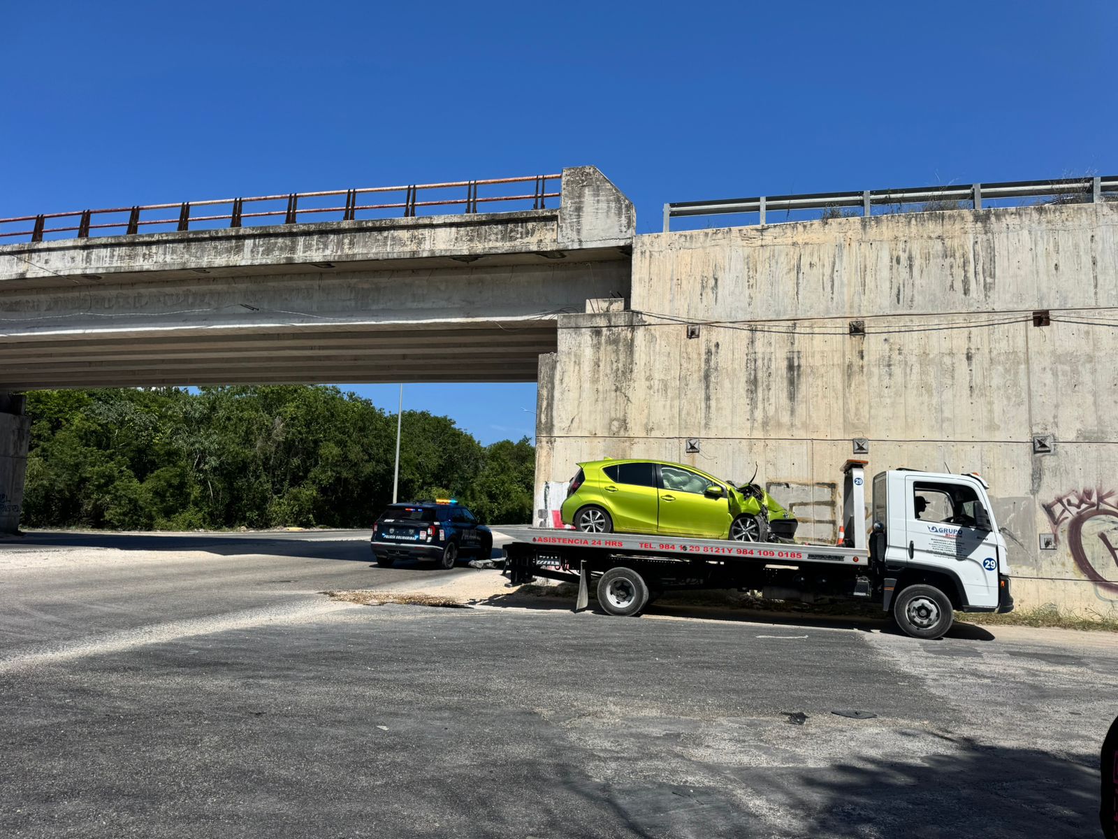 PLAYA DEL CARMEN, Quintana Roo, 22 de julio de 2025.- Al conducir a exceso de velocidad del chofer de un vehículo particular impactó su unidad contra la base de uno de los puentes que se encuentran en las afueras del fraccionamiento Villas del Sol, por lo que las autoridades tuvieron que intervenir.