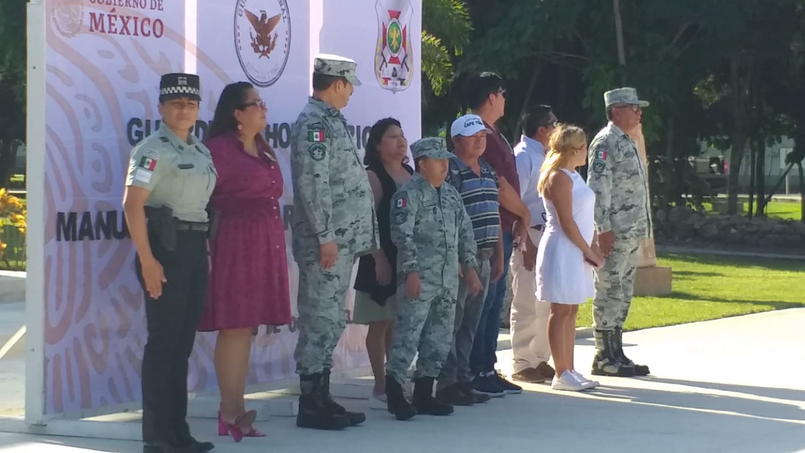 Portando el uniforme que fue hecho a su medida, Manuel de Atocha, hizo su arribo al cuartel, se uniformó para asistir a la ceremonia de su nombramiento y en emotiva Ceremonia el “Guardia Honorario” que estuvo encabezada por el comisario Israel Noé Castillo Pérez, Coordinador de la Guardia Nacional en el estado de Quintana Roo se hicieron honores a la bandera para dar paso a la fotografía del recuerdo.
