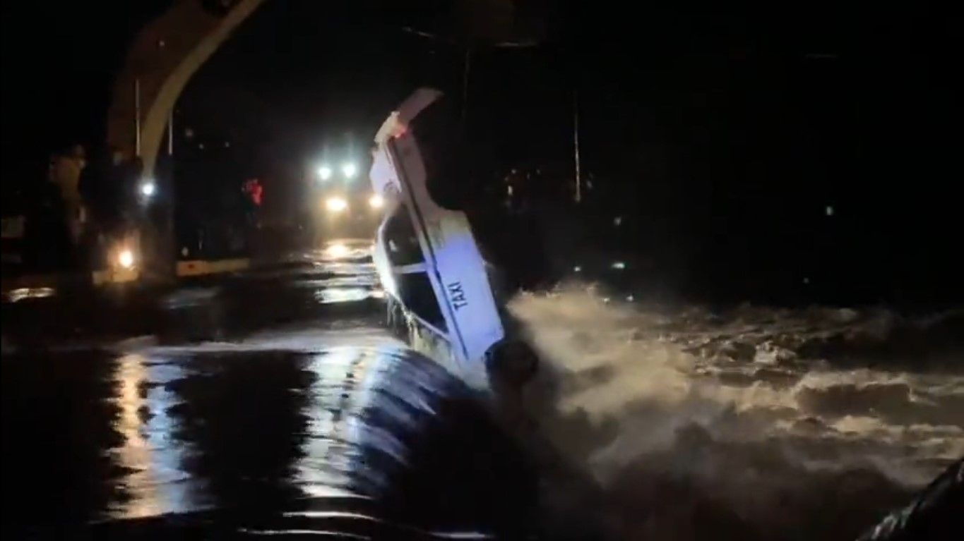 Las lluvias ocasionadas por Norma en Sinaloa hicieron crecer un arroyo, que arrastró un taxi cuyo conductor murió